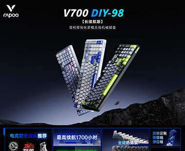 V700DIY-98长续航版内置10000mAh大容量锂电池,搭配雷柏新升级低功耗无线技术,让续航得到跨越式提升,使用USB-C接口单次充满电最长可连续使用1700小时,从此续航无忧。