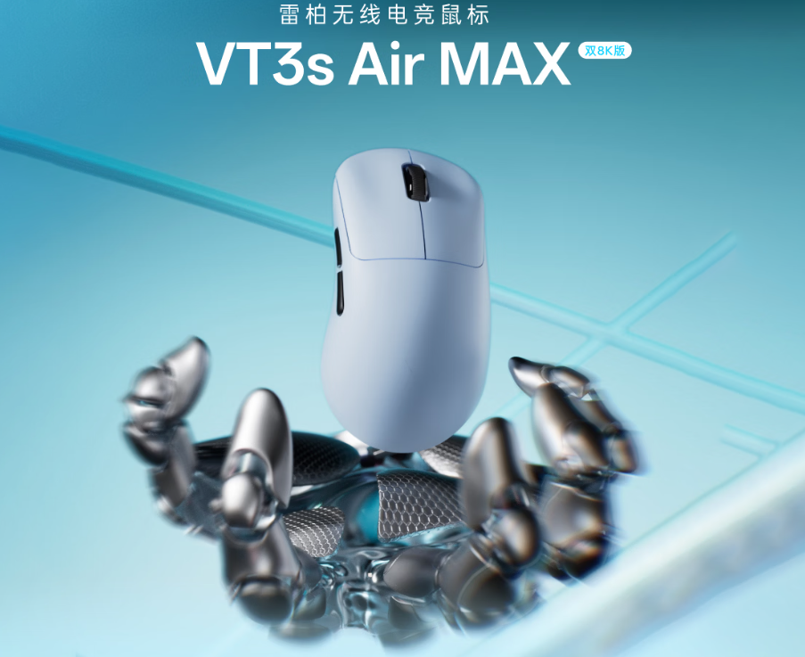 雷柏VT3sAirMAX二代游戏鼠标现已在官方旗舰店开启新品预约,专为中小手玩家打造,京东预约价299元。配备冰感PTFE大脚垫、8K高速编织线、备用脚贴、防滑贴等丰富配件。