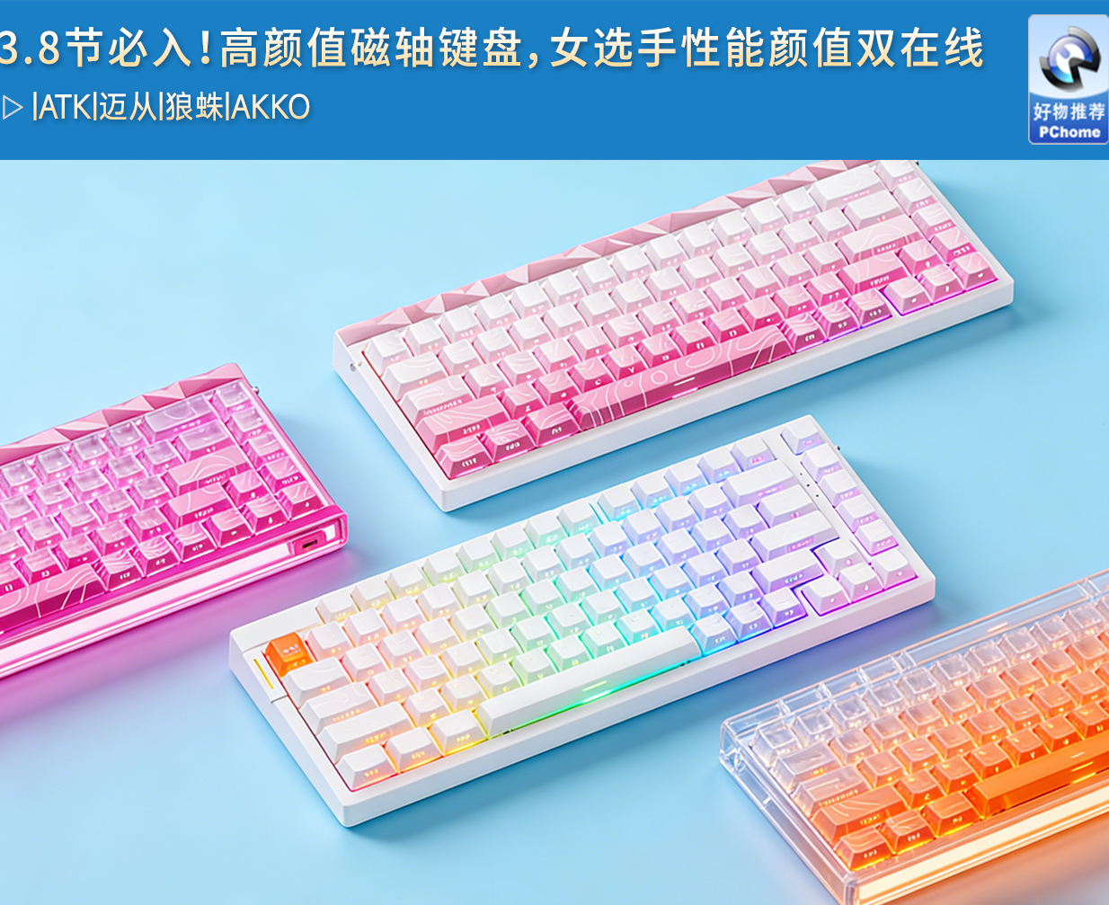 恰逢 3.8 女神节,为女选手们挑选一款高颜值的外设礼,也不失为一个新鲜的选择。本篇文章就为大家精选出四款磁轴键盘,涵盖ATK、迈从、狼蛛、AKKO四大品牌,从极致电竞到客制化DIY,帮你选出一份专属的电竞好礼。